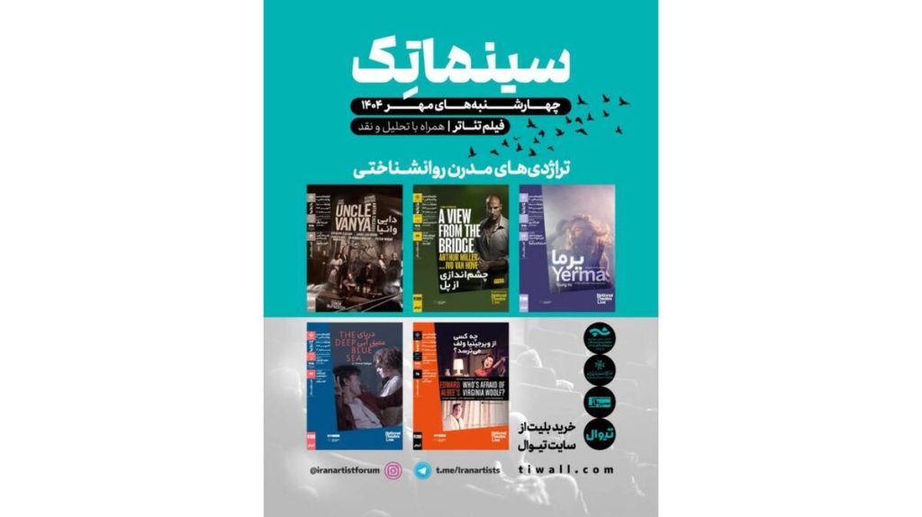 فیلم‌تئاتر‌های «دایی وانیا» به کارگردانی راس مک گیبن و یان ریکسن، «چشم اندازی از پل» به کارگردانی ایوو فون هوف و نیک ویکهام، «یرما» به کارگردانی سیمون استون و تونی گرچ اسمیت، «دریای عمیق آبی» به کارگردانی کری کرکنل و متیو اموسو و «چه کسی از ویرجینیا ولف می‌ترسد؟» به کارگردانی جیمز مک دانلد و تیم فن سومرن طی پنج هفته مستمر از چهارشنبه ۲ مهر تا چهارشنبه ۳۰ مهر ۱۴۰۴ روی پرده خواهند رفت که جزئیات مربوط به هر یک از این اکران‌ها و نشست‌های تحلیلی پس از آن، به تدریج و به صورت هفتگی اطلاع‌رسانی خواهد شد.