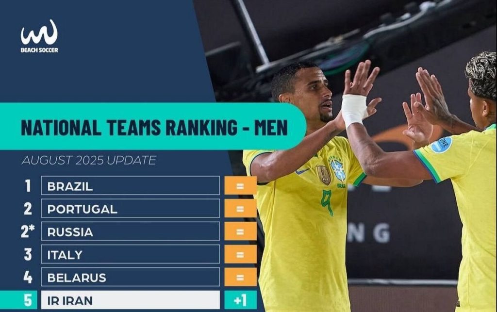 به گزارش صدای شهر طبق اعلام فدراسیون فوتبال، در تازه ترین رده بندی اعلام شده توسط سازمان جهانی فوتبال ساحلی، تیم ملی فوتبال ساحلی ایران با یک پله صعود در رتبه‌ی پنجم دنیاست.