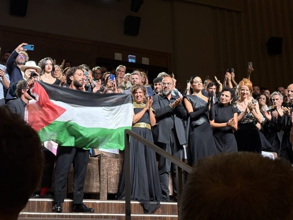 نمایش فیلم با برافراشته شدن پرچم‌های فلسطین و شعار « فلسطین آزاد» همراه شد.